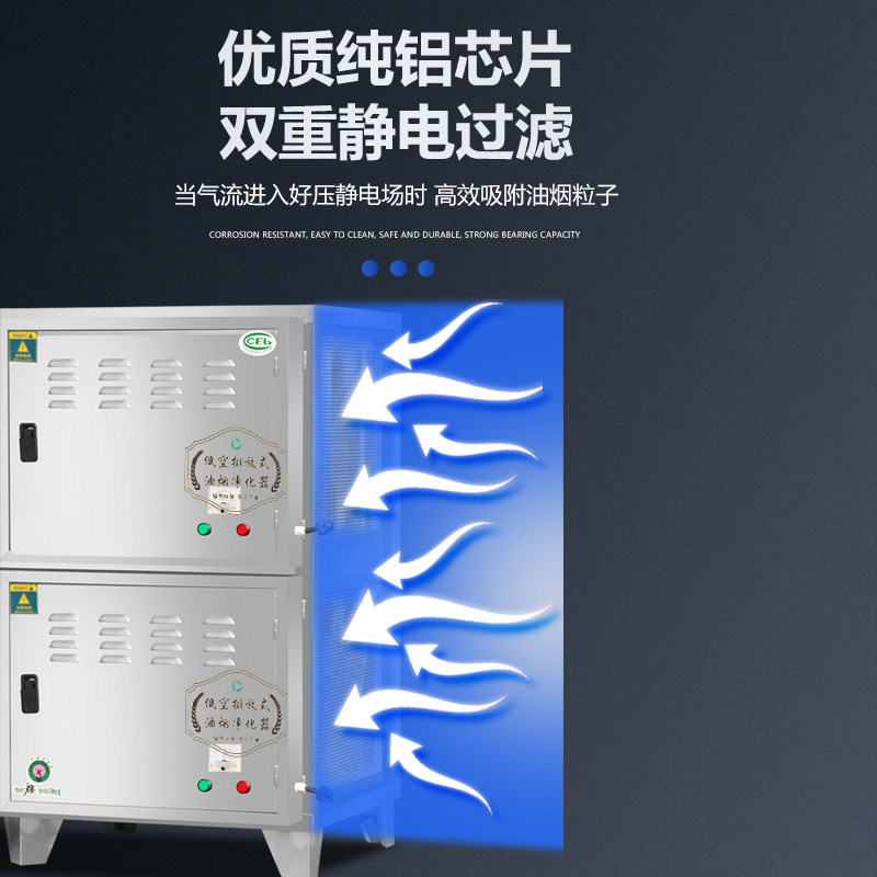 High-end low-altitude emission smoke purifier Deodorized commercial stainless steel electric field restaurant barbecue kitchen package