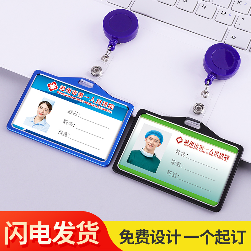Doctor work card badge telescopic buckle hospital nurse hang card aluminum alloy card set work card custom badge custom