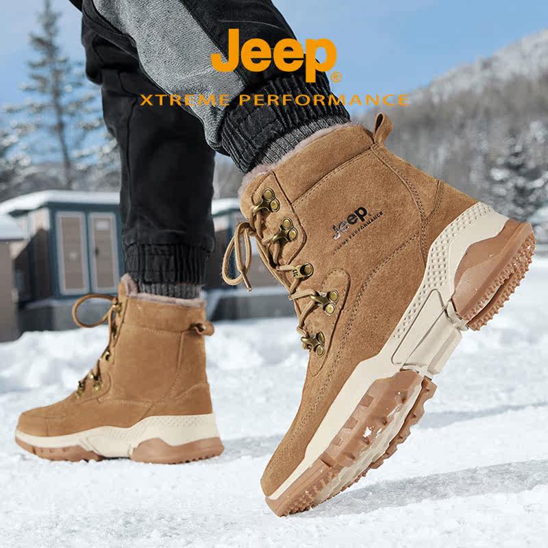 jeep gip male shoes winter new gush thickened warm short boots men high helps cotton shoes genuine leather boots snowy boots-Taobao
