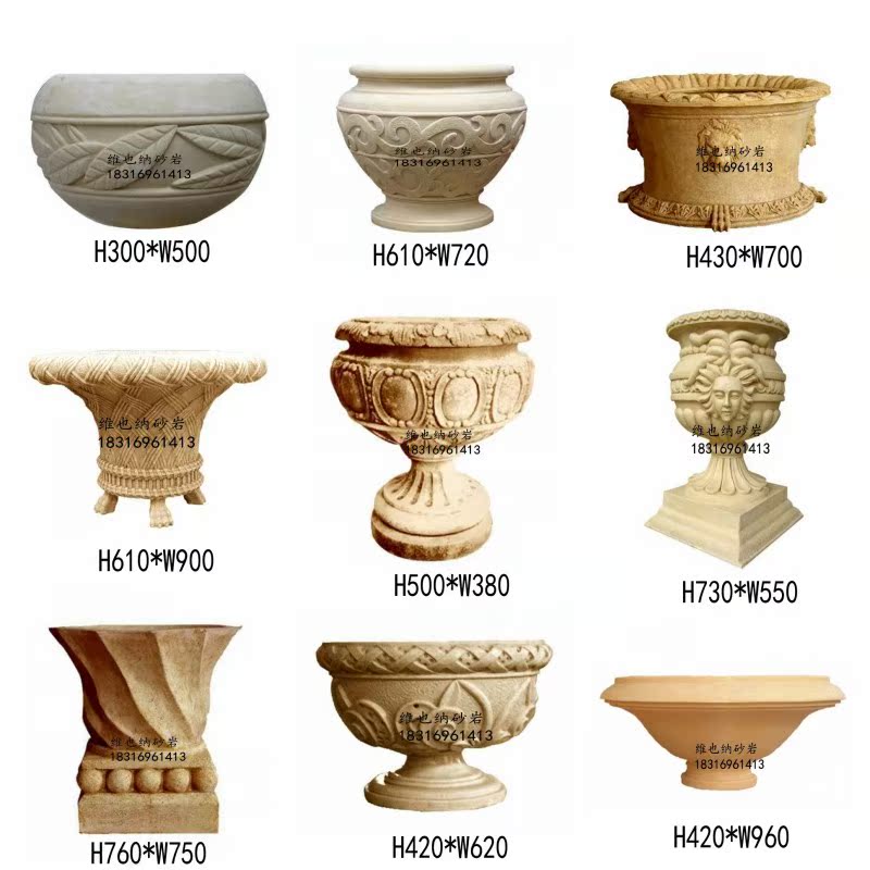 Custom sandstone FRP flower pot flower bowl float sculpture indoor outdoor decoration garden landscape villa home decoration European style
