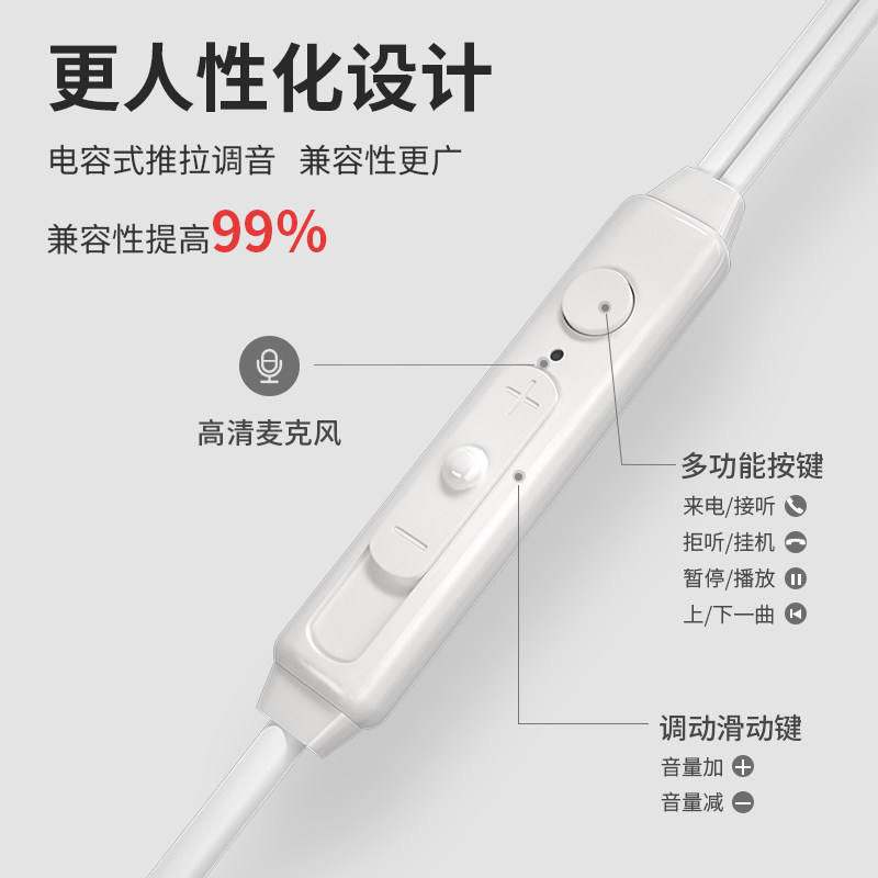 Headphone in-ear typec interface suitable for wired Huawei nova6 glory 3C Xiaomi 2s soundproof Max 2 music k song red rice Note universal ipone5s round hole 3