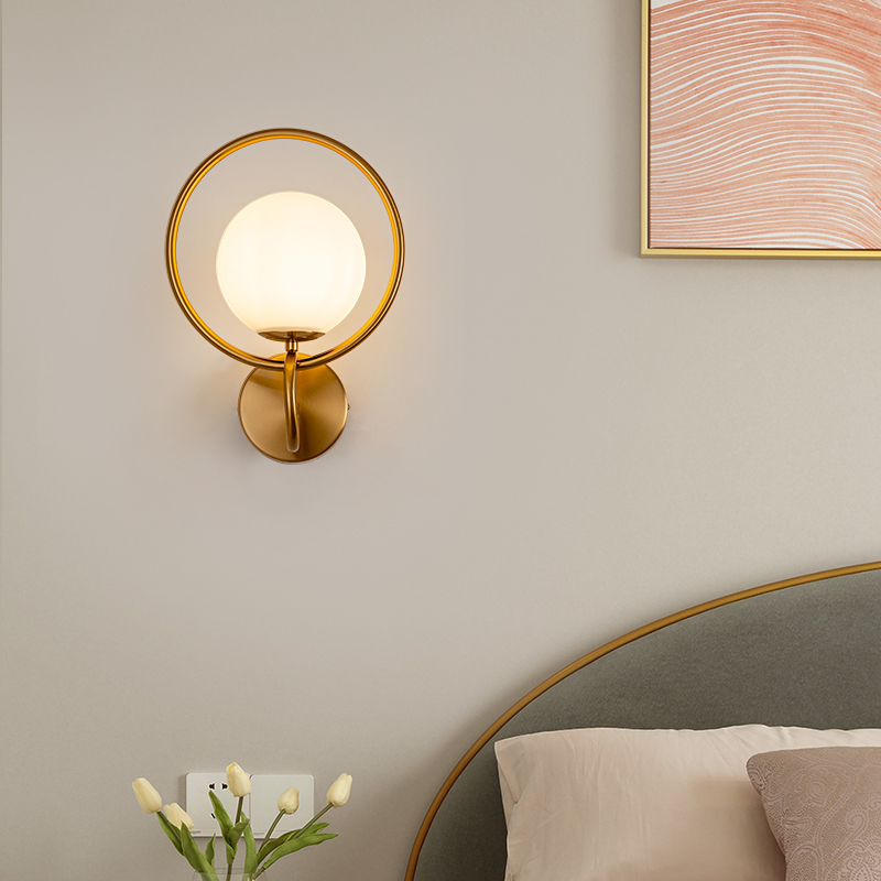 Nordic Bedroom Wall Lamp Light Luxurious Bed Head Lamp Round Creative American Balcony Aisle Living Room TV Background Wall Wall Lamp