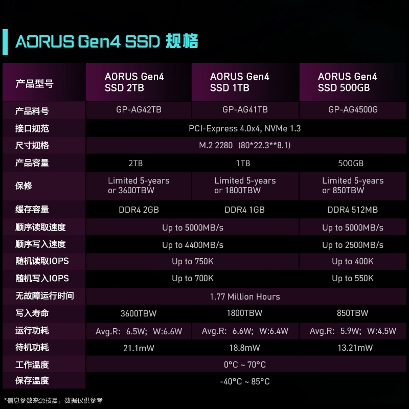 AORUS Gen4 SSD 500GB AORUS Gen4 SSD 1TB AORUS Gen4 SSD 2TB