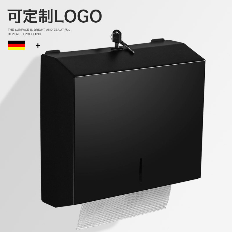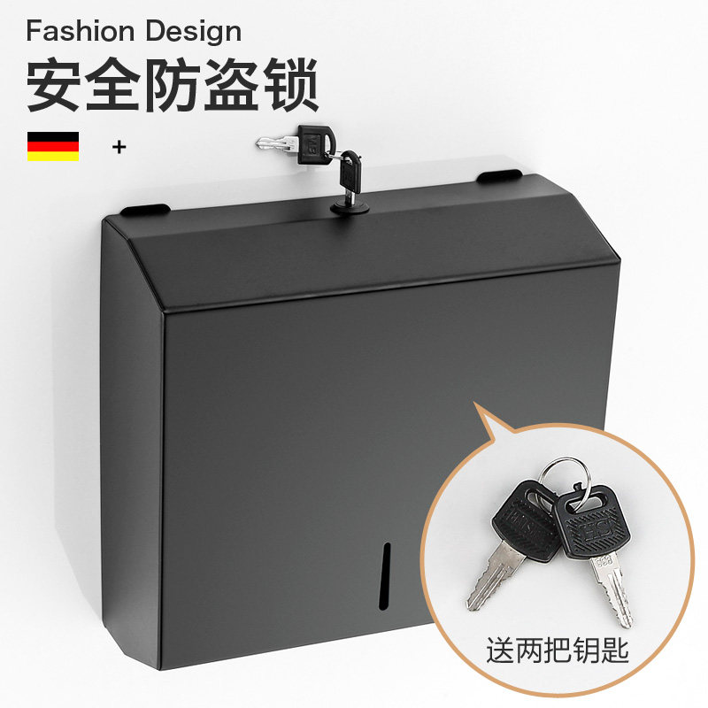 Black stainless steel toilet large roll paper box public toilet wiping paper box hotel wall-mounted large tray paper towel holder