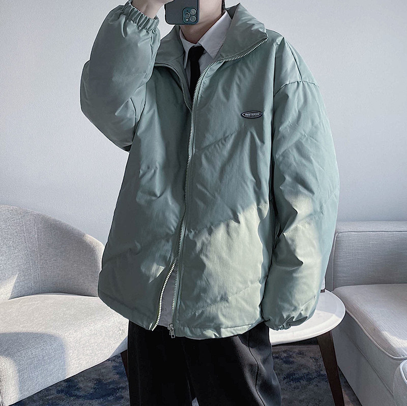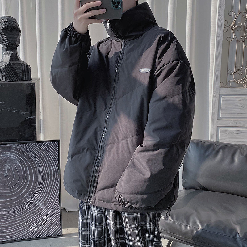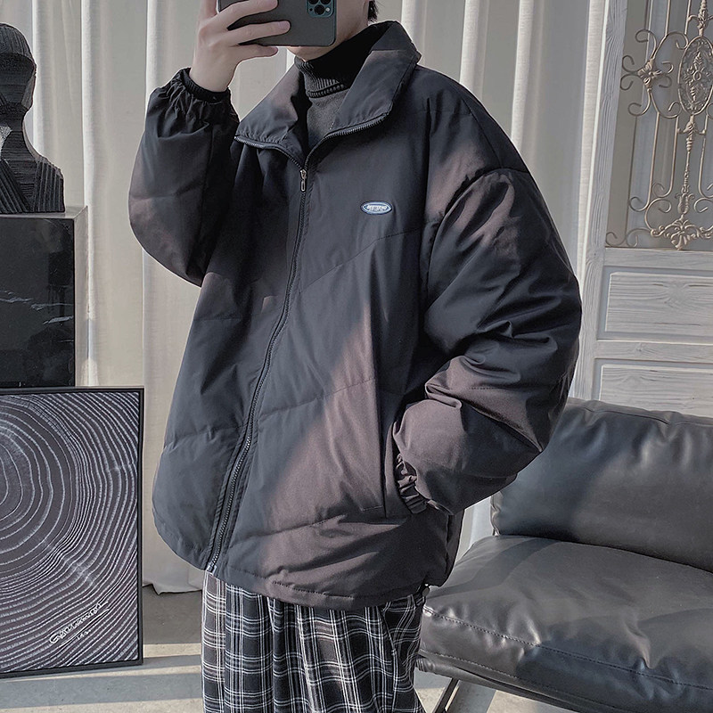 Winter solid color stand collar port wind pressure line men's handsome white duck down lightweight profile net red down jacket student short