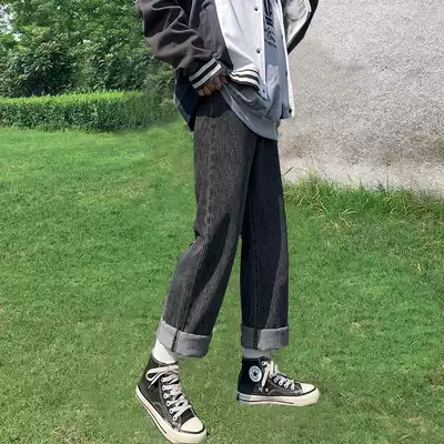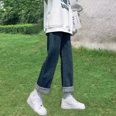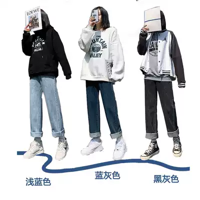 Wide leg jeans women's autumn straight loose high waist chic autumn and winter retro Spring and Autumn pear body pants harbor style