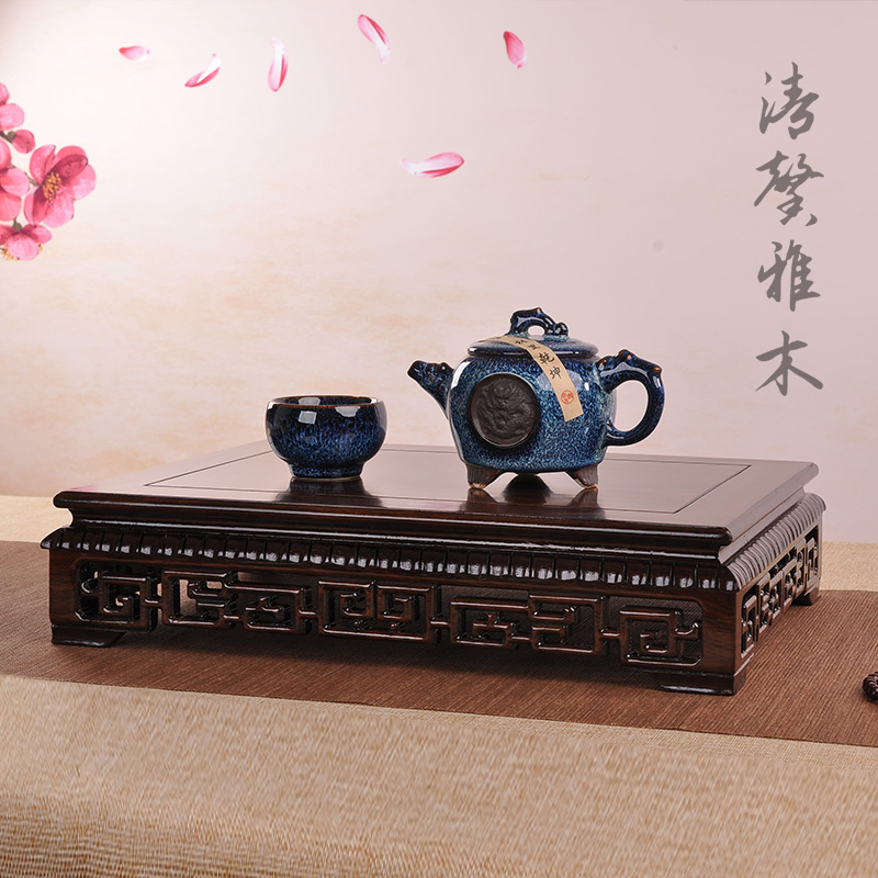 Black Sandalwood Ortho Rectangular Jade Instrumental Stone Buddha Flowers Bonsai Ancient Play Handicraft Swing Accessories Solid Wood Base Wooden Care Shelf