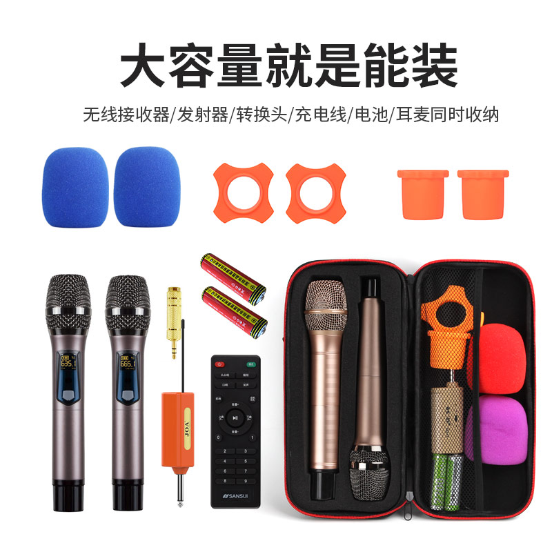 Portable handheld wireless dual microphone storage bag with pull chain finishing bag two corded microphone protection bags