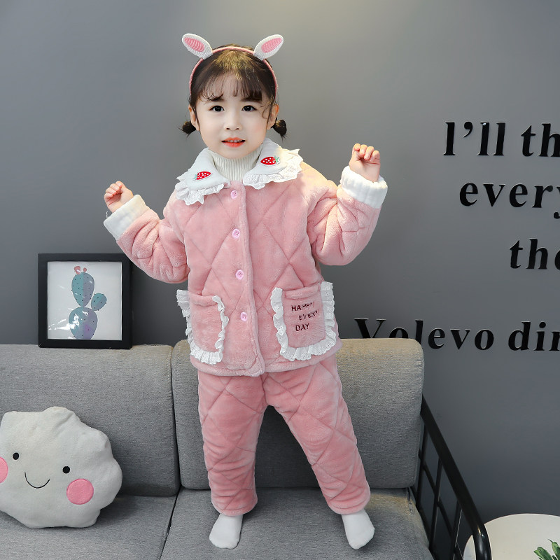 Children's pyjamas winter girl gush thickened flange suede autumn winter style baby coral suede home suit suit
