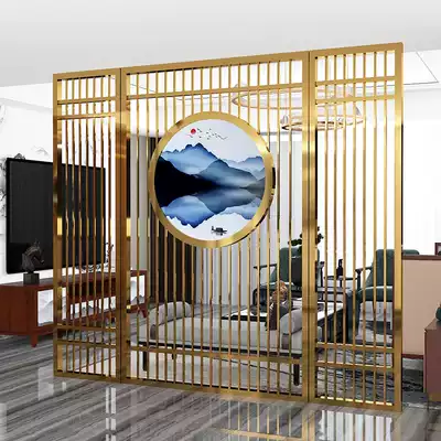 New Chinese style titanium stainless steel screen partition hollow entrance Bronze hotel villa clubhouse sample house display center lattice
