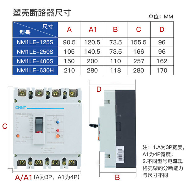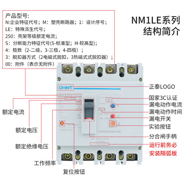 Zhengtai NM1LE-100A-400A three-phase four-wire circuit breaker with leakage protection switch 250A