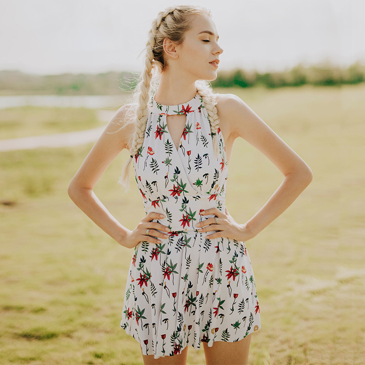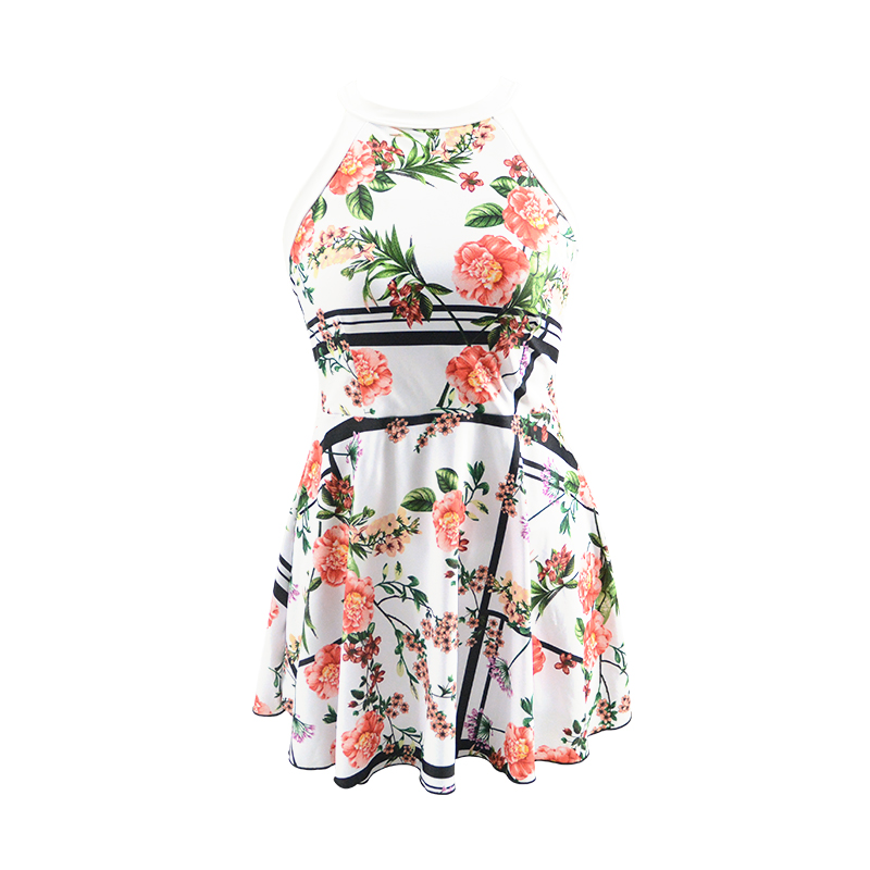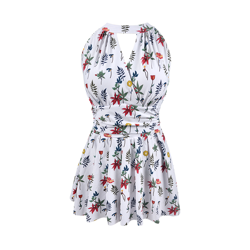 White Bottom Broken Flowers Danqing China Wind Qipao style Li Xiaorice Temperament Swimsuit Women Conservative even Skirt Style Safety Pants drain