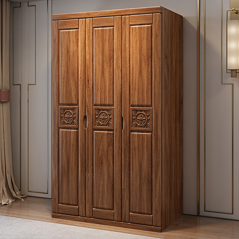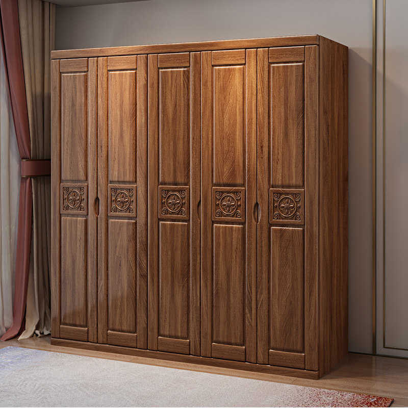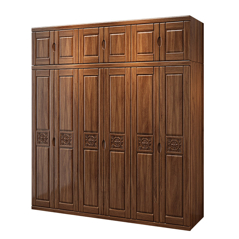 Chinese solid wood wardrobe Walnut modern simple four five six door storage economical log large wardrobe