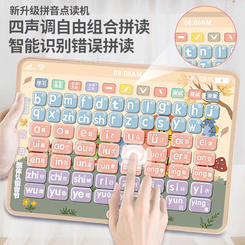 12 inch four tone pinyin learning machine (pink charging version) send pinyin learning book syllable table pinyin card