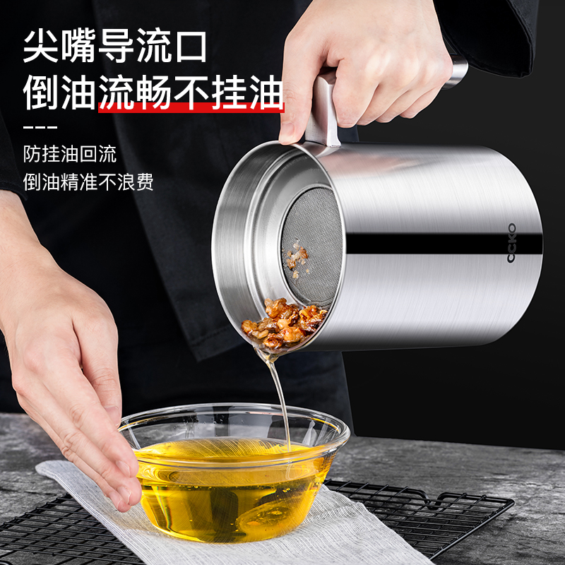 CCKO304 Stainless Steel Oil Pot Large Capacity Filter Oil Residue Storage Hot Pig Oil Tank Home Oil Bottle Kitchen Filter Oil Tank