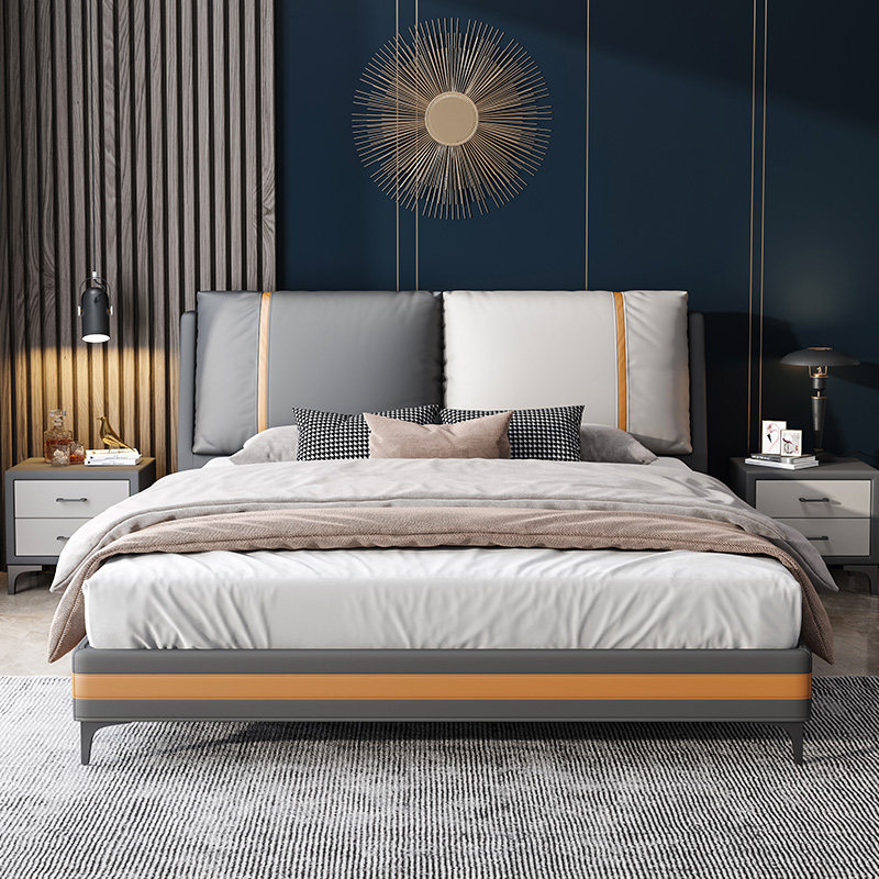 Leather bed Modern and simple master bedroom Wedding bed Small apartment 1 8m Nordic light luxury double bed Italian minimalist soft bed