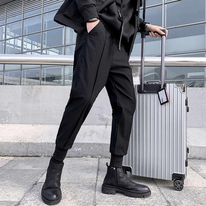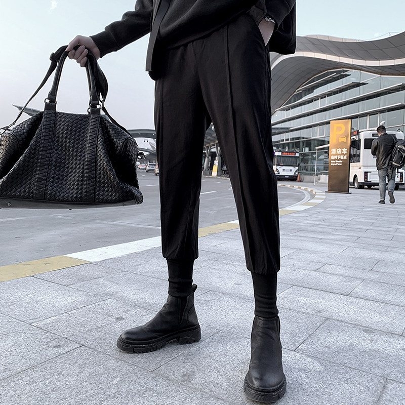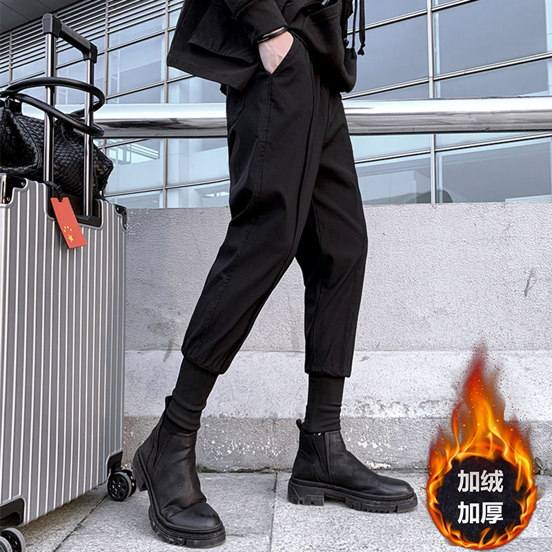 Black casual pants men's autumn and winter 2021 New Korean version of the trend Ruffian handsome brand plus velvet padded padded bunched toe pants