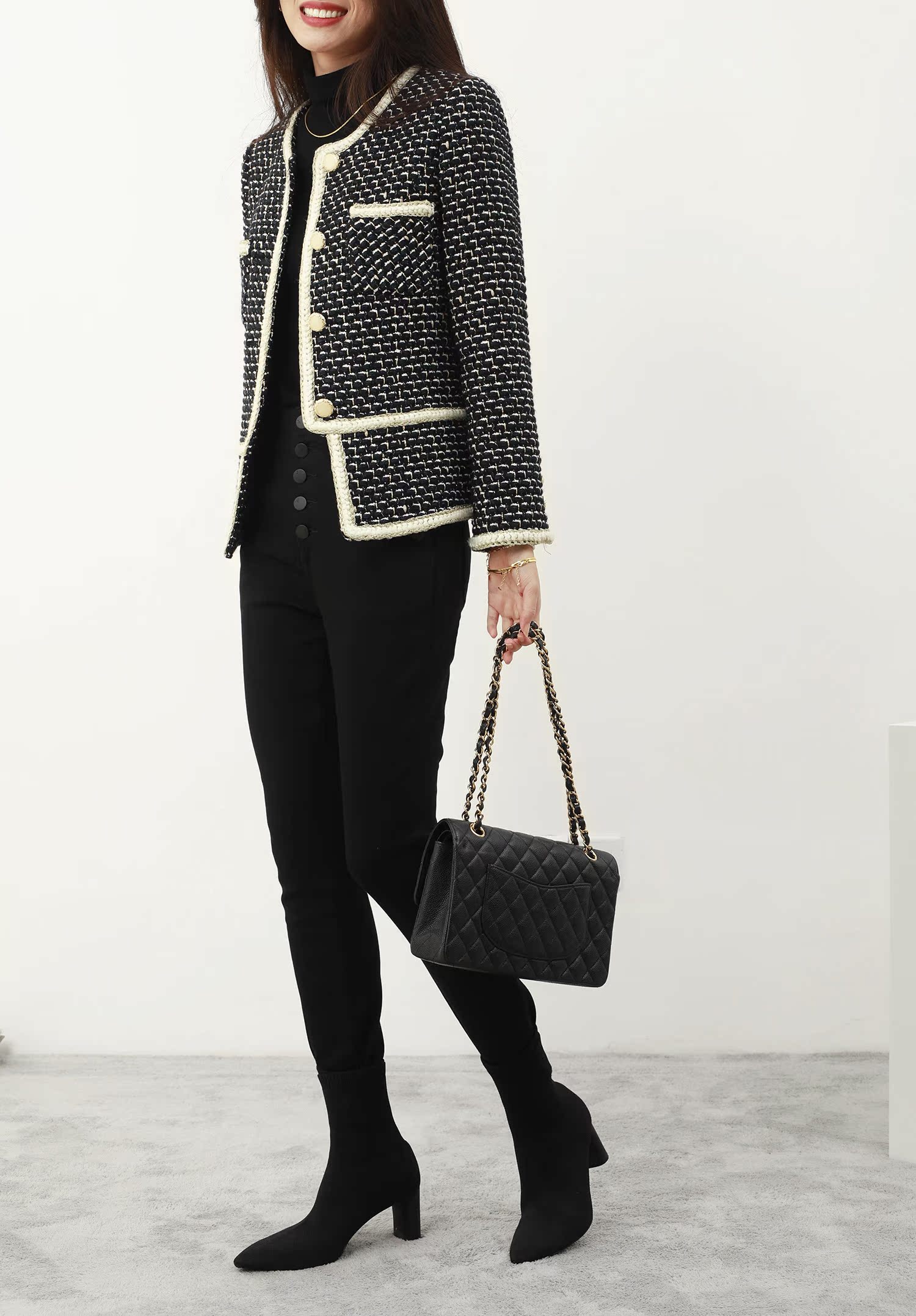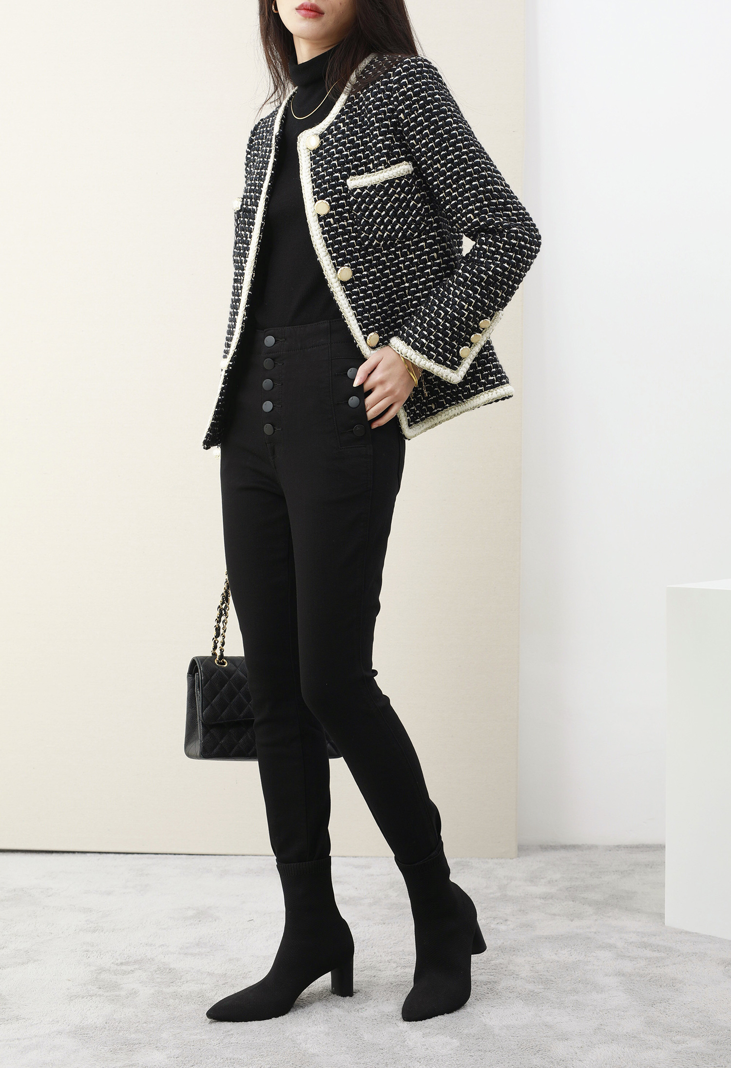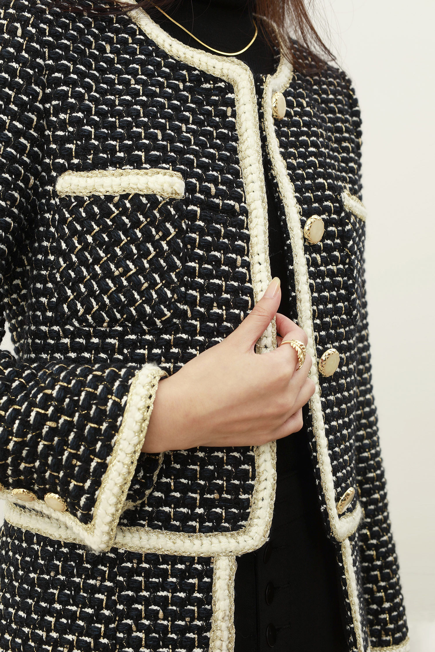 (Broken code special) Spire big beauty Italian heavy industry hand-knitted tweed black gold small fragrant wind jacket autumn and winter thick