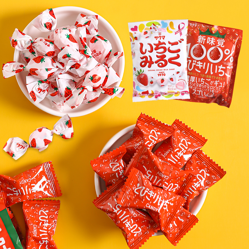 Tanabata SAKUMA SAKUMA Strawberry milk sandwich candy Girl heart hard sugar HAPPY candy Japanese snack