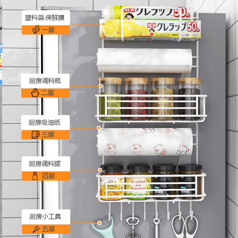 Refrigerator rack side rack multi-layer kitchen supplies household large-scale side wall plastic wrap multi-functional storage rack
