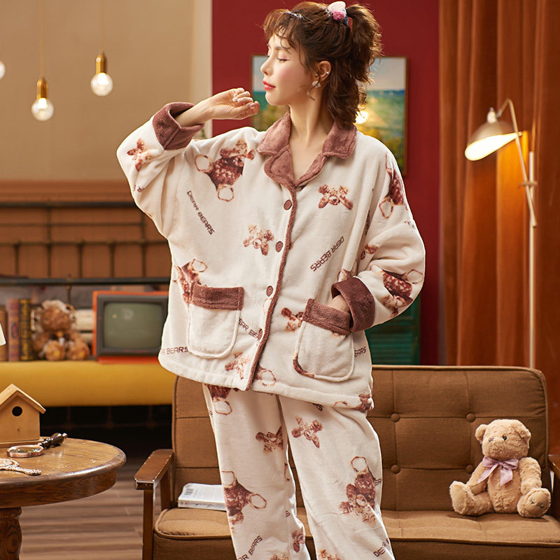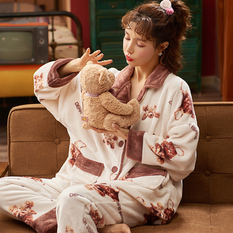 South Pole Sleeping Clothes Autumn Winter Women Coral Suede Cartoon Sweet and cute new Garnter thickened Home Suits 2 Suits