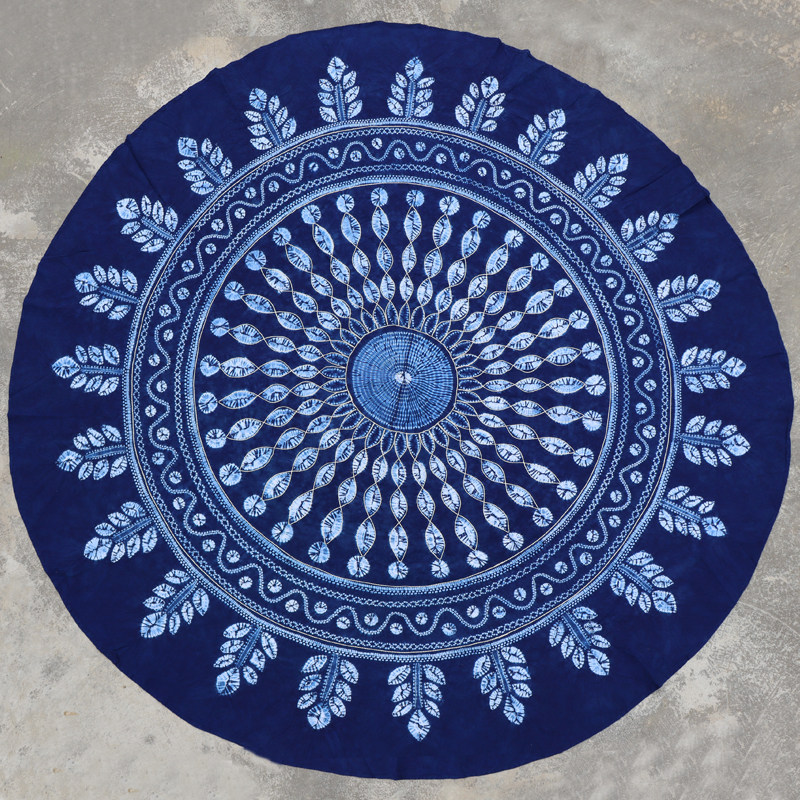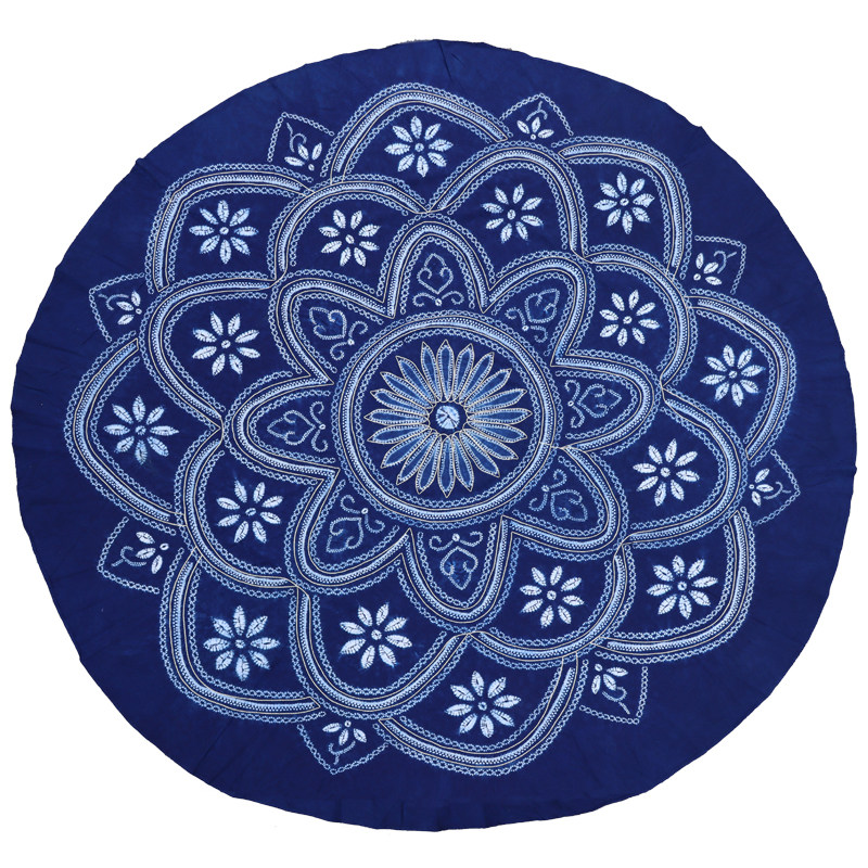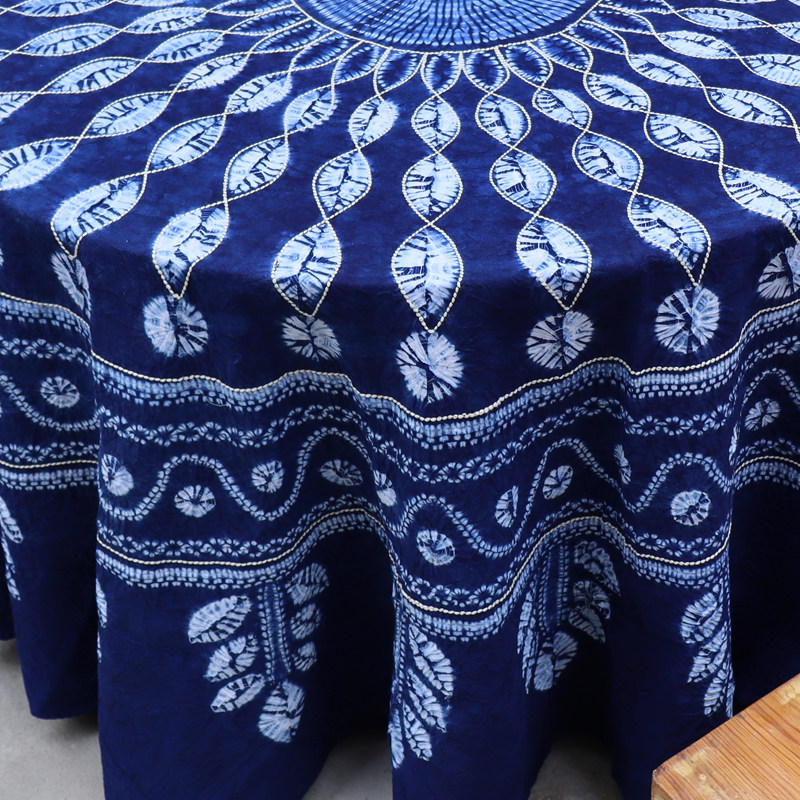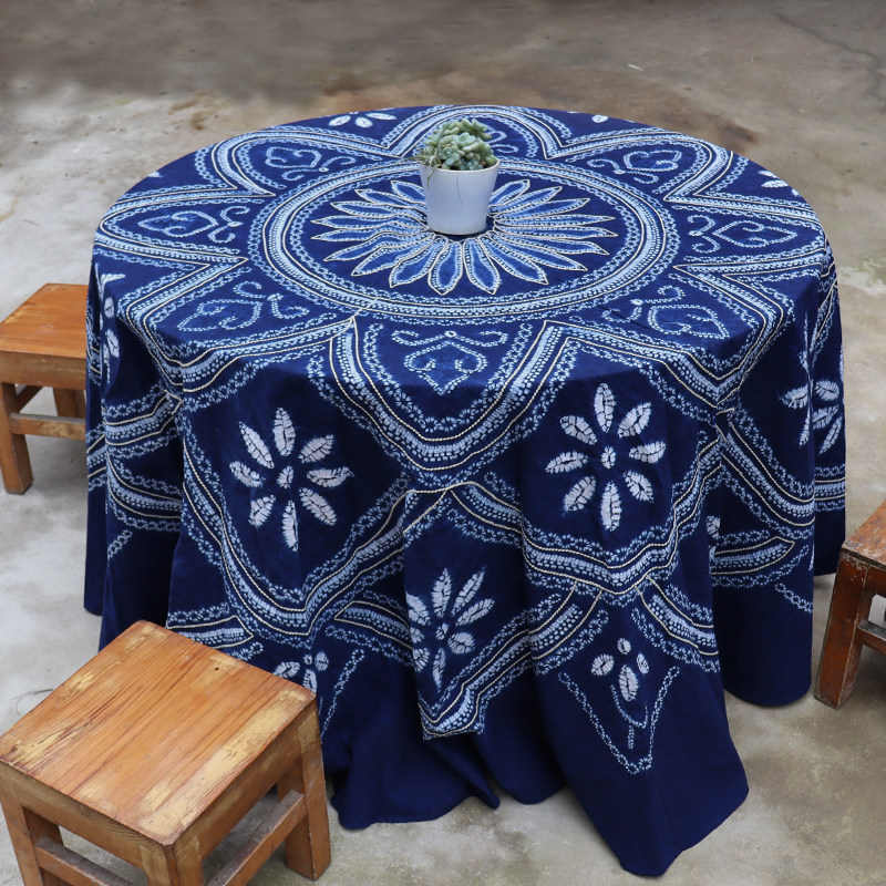 Dali Bai traditional hand-dyed pure cotton sashiko embroidered large round tablecloth vegetation blue dyed ethnic pastoral style tablecloth