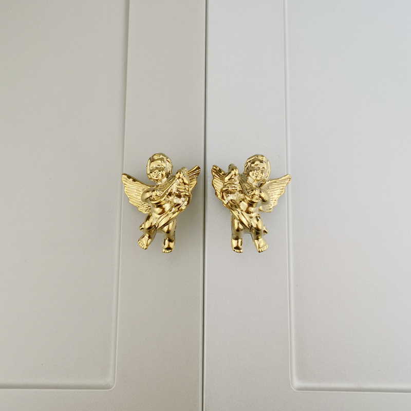 Cast bronze French brass small angel handles Northern Europe light luxury antique wardrobe door drawer holistic cupboard gold handle