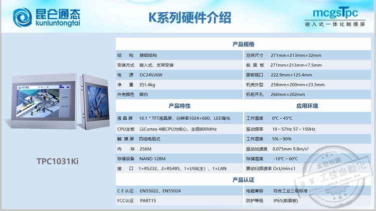(TPC1031Ki) 10-inch Ethernet port screen Kunlun on-state McgsPro touch screen 261X202 drilling