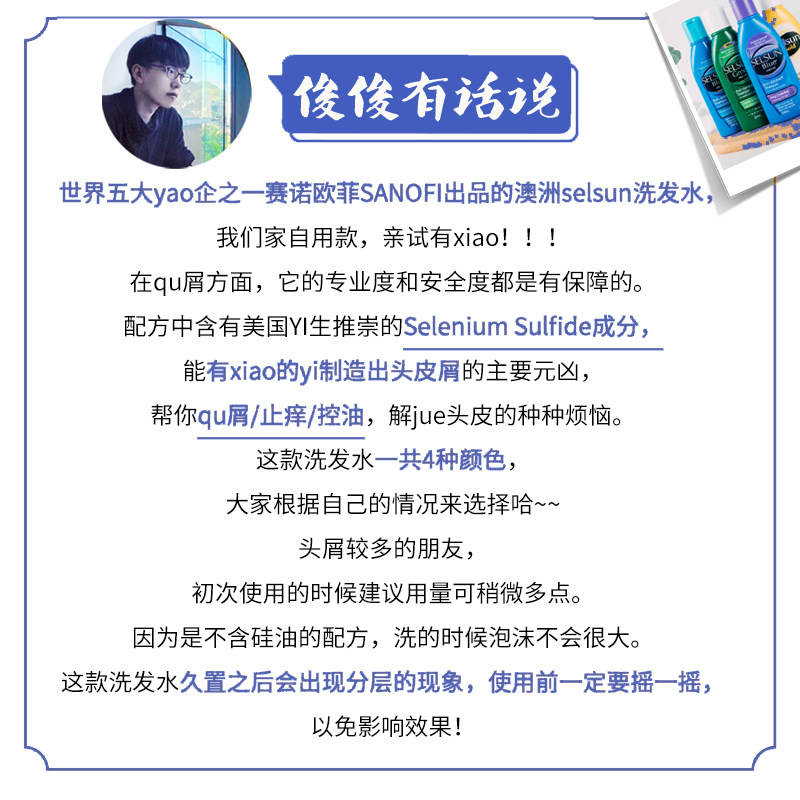 Australian Selsun shampoo gold yellow blue purple controlled oil for dandruff dandruff shampoo bloue