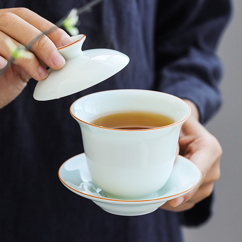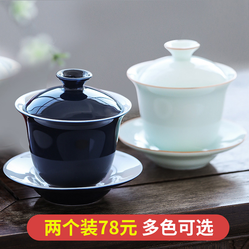 Gaiwan tea cup color glaze tea bowl Kung Fu tea set Sancai bowl white porcelain household non-hot ceramic tea bowl large