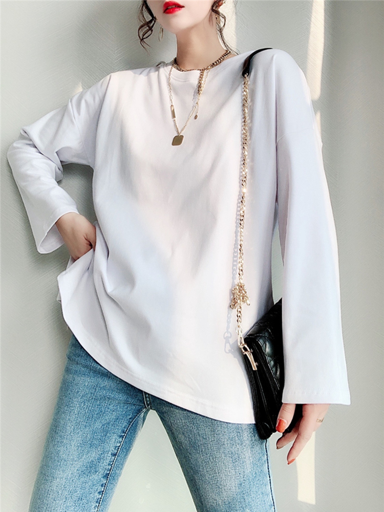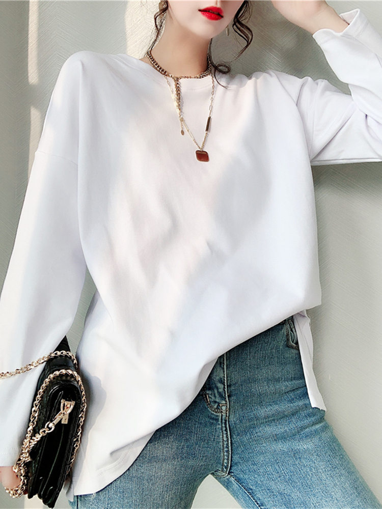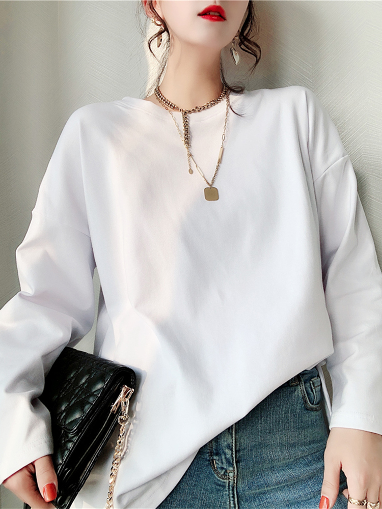 White bottoming shirt women's autumn and winter with Western style thin cotton long-sleeved T-shirt skirt mid-length version all-match spring and autumn top