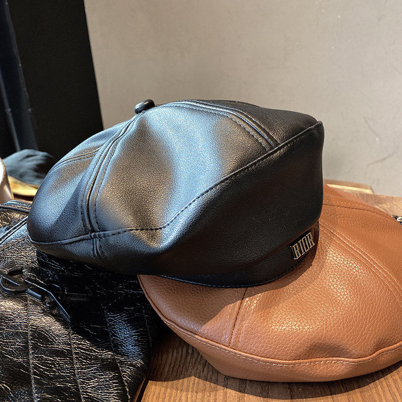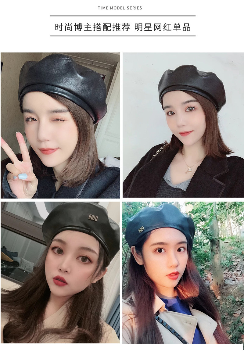 Fashion brand European and American style leather beret women autumn winter new vintage British painter hat fashion net red same hat