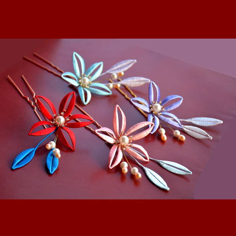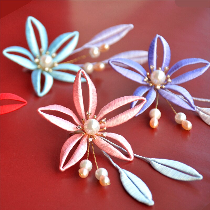 Revered four pieces of hair Hairpin Ming Dynasty Silk Tangle Flower Hairpin Fresh Water Pearl Platoon Hairpin Hanfu Head Decoration Complete