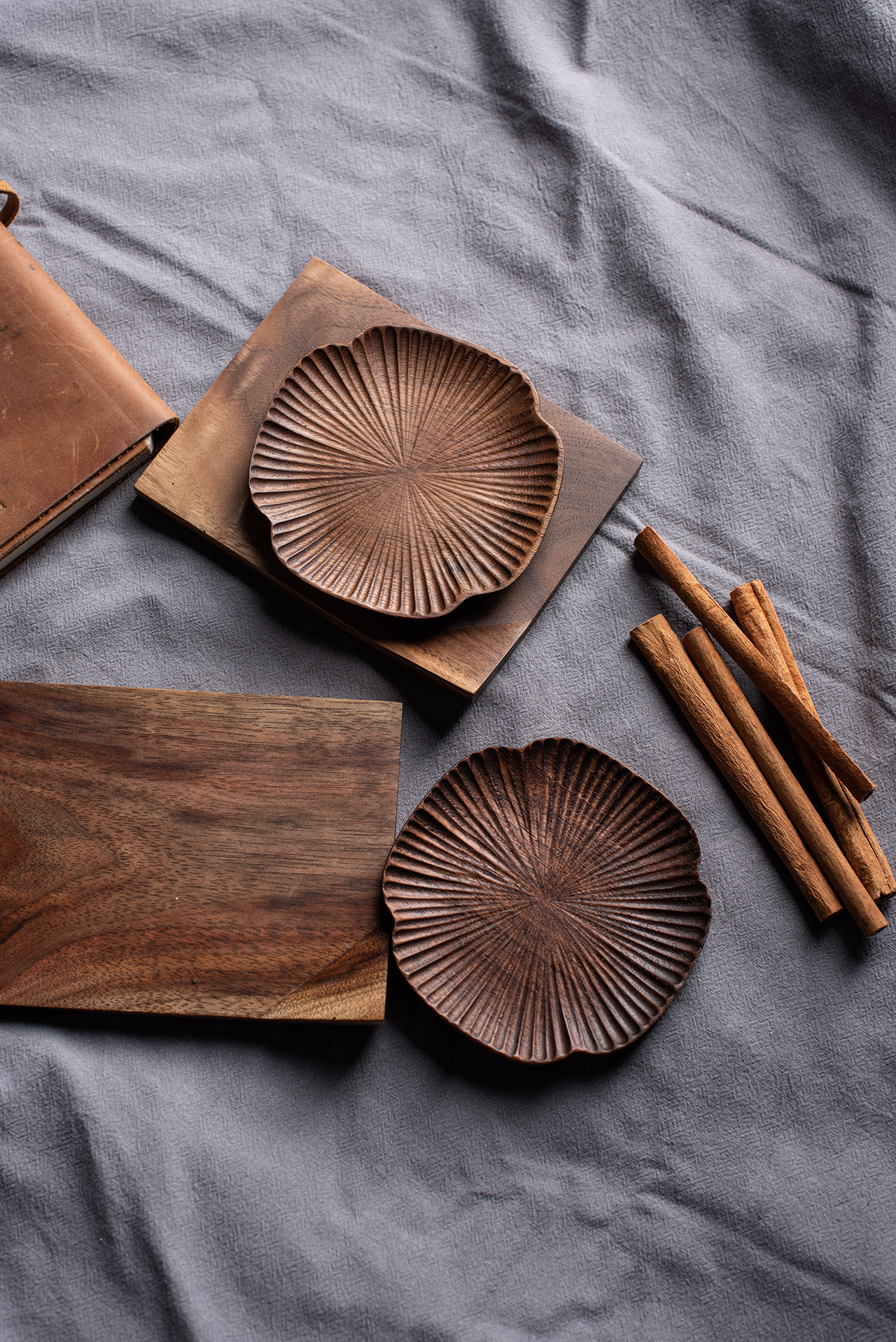 Black Walnuts Wood Textured Insulation Solid Wood Cups Cushion Tea Art Food Photography Props Chinese Pastry Shooting-Taobao