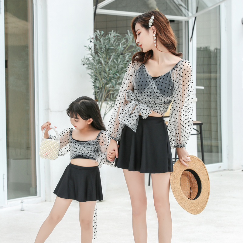 ins parent-child swimsuit children split skirt three-piece girl Hot Spring children large size mother and daughter new swimsuit