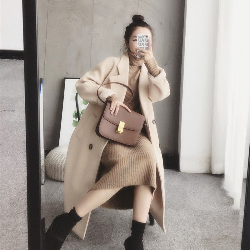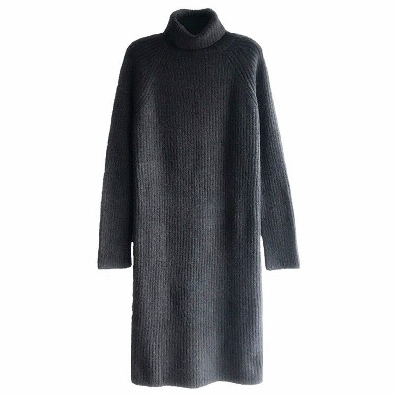 Knitted sweater dress spring and autumn 2022 new French style lazy loose high-necked pullover bottoming mid-length sweater women