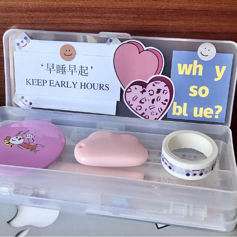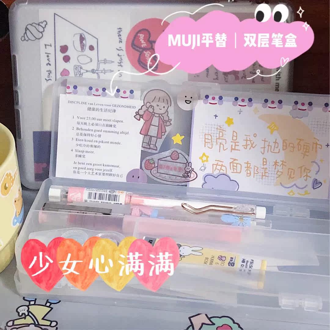 Korean ins double-layer matte stationery box student large-capacity girl heart can DIY stationery storage box pencil case