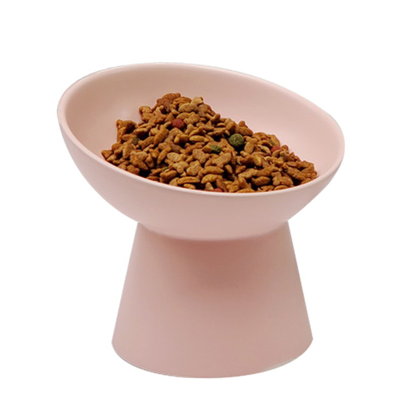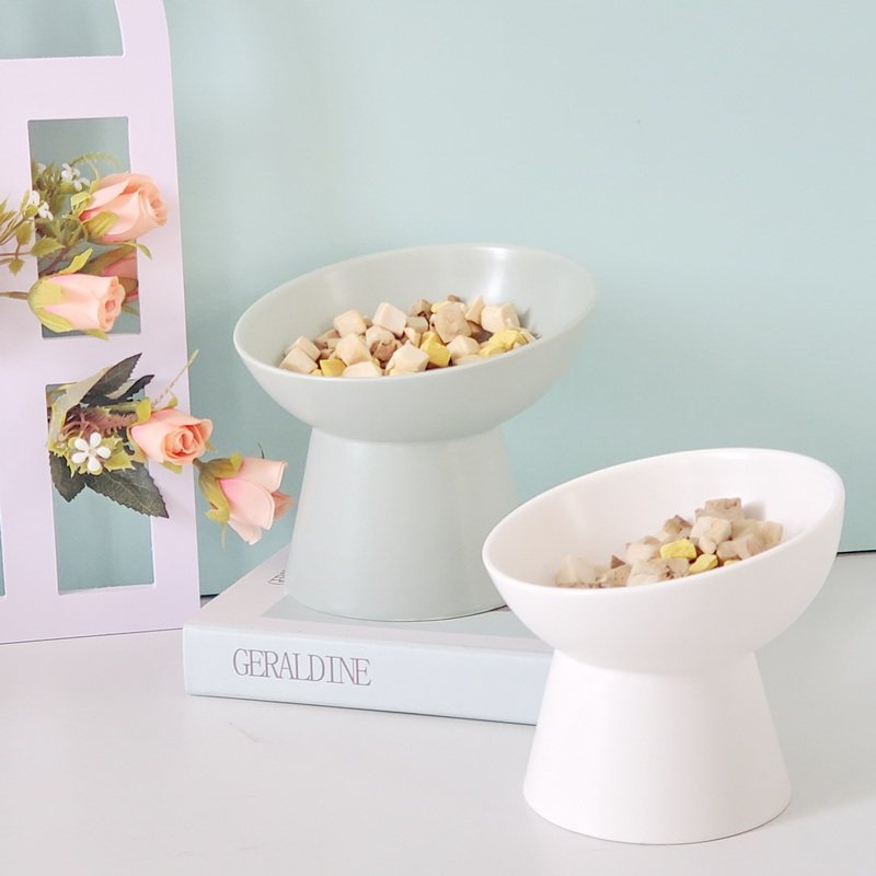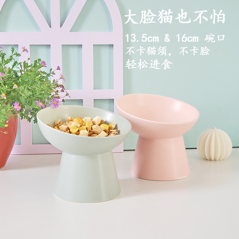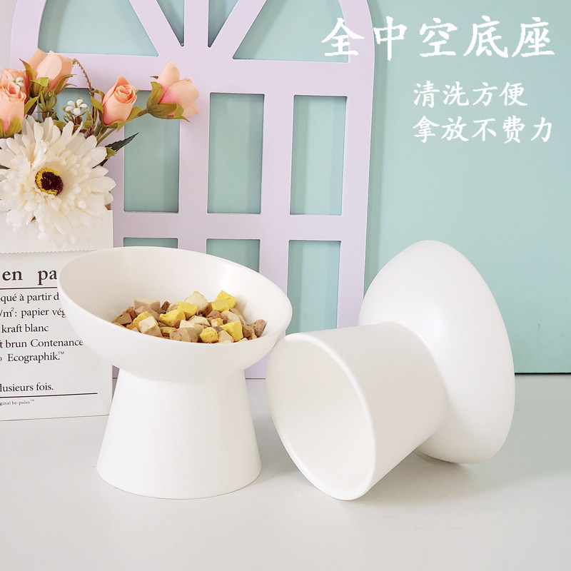 Slanted mouth cat bowl ceramic high foot cat food bowl to protect cervical vertebrae flat face cat bowl to prevent overturning cat and dog food bowl pet supplies