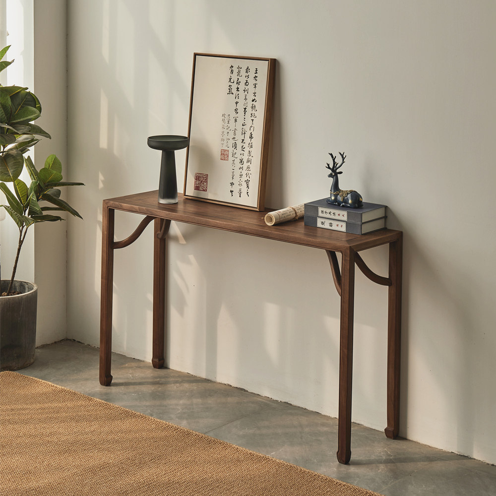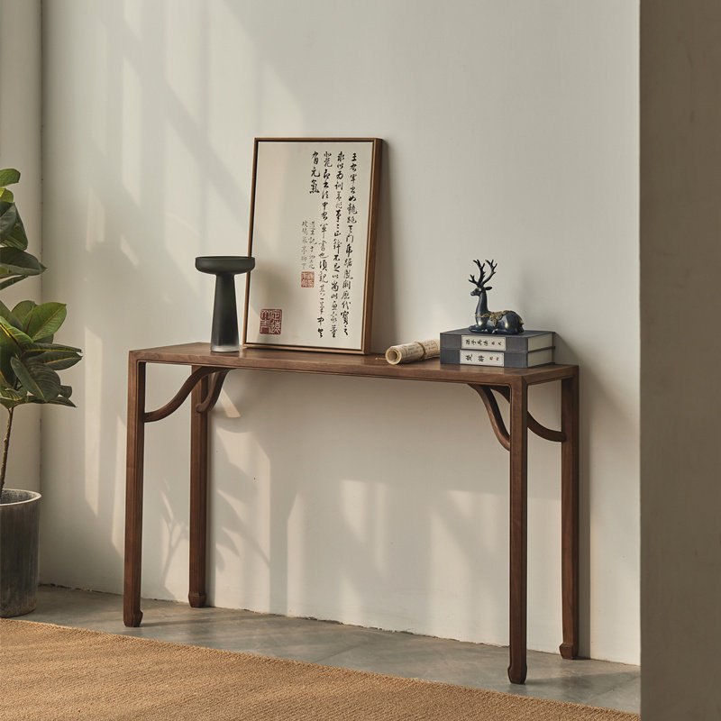 Xumu new Chinese strip case black walnut solid wood porch table old elm flat head table table Zen for table table furniture