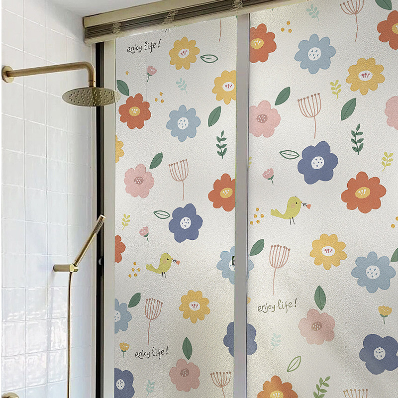 Wardrobe Mirror Sticker Shelter Opaque Bedroom Window Glass Sticker Shading Sunscreen Cling window Flower paper-Taobao