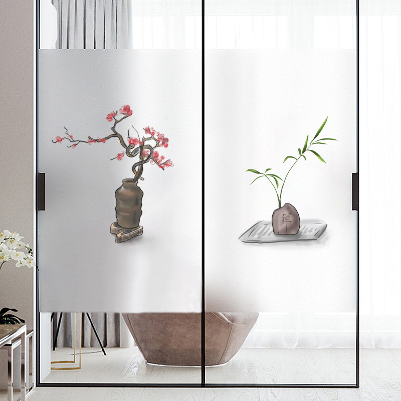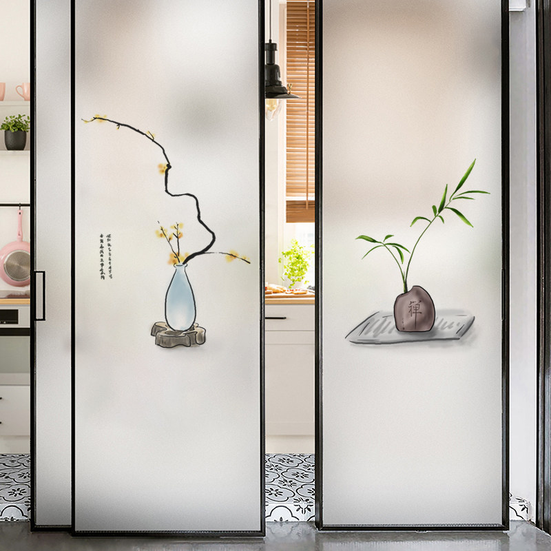 Electrostatic glue-free glass sticker light-opening restaurant door balcony toilet window anti-peeping Chinese-style sand grinding film