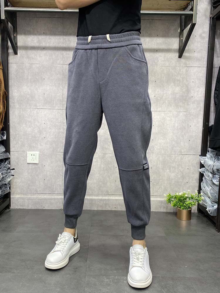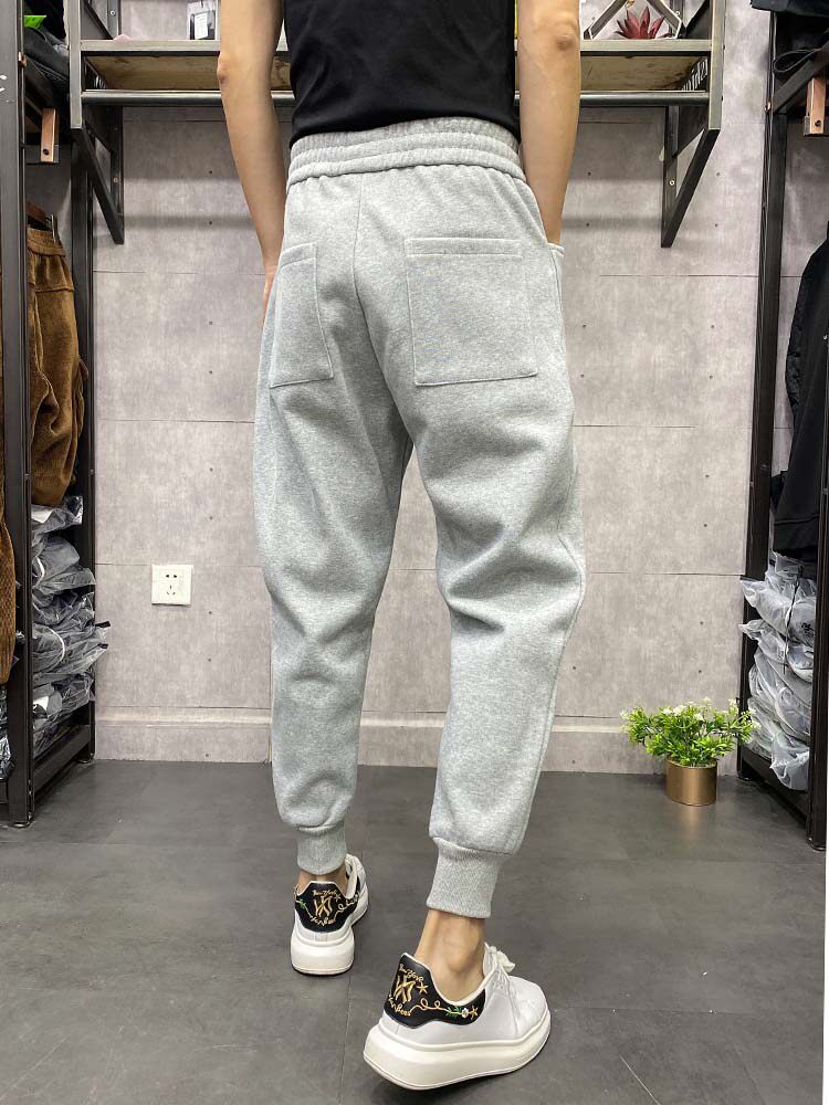 Casual small feet long pants men's autumn and winter plus velvet tide brand knitted elastic pants solid color harem beamed sports pants