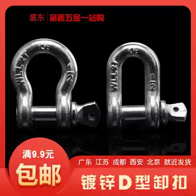Galvanized D-shaped bow shackle U-shaped lifting accessories chain lock buckle bow-shaped lifting ring lock 1 2 tons