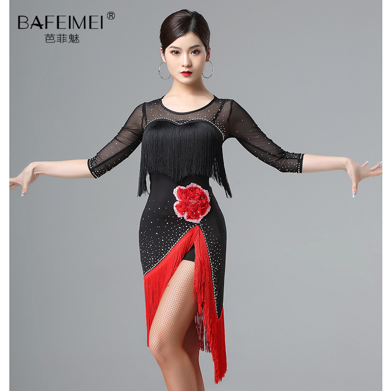 Latin Dance Dress Women 2022 Modern Ballroom Square Dance Fringed Dress Practice Competition Perform Costume