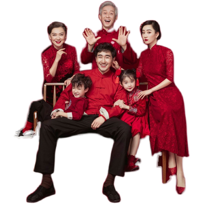 New photo studio photo family portrait A family of six New Year family outfit wool lace parent-child theme photography clothing