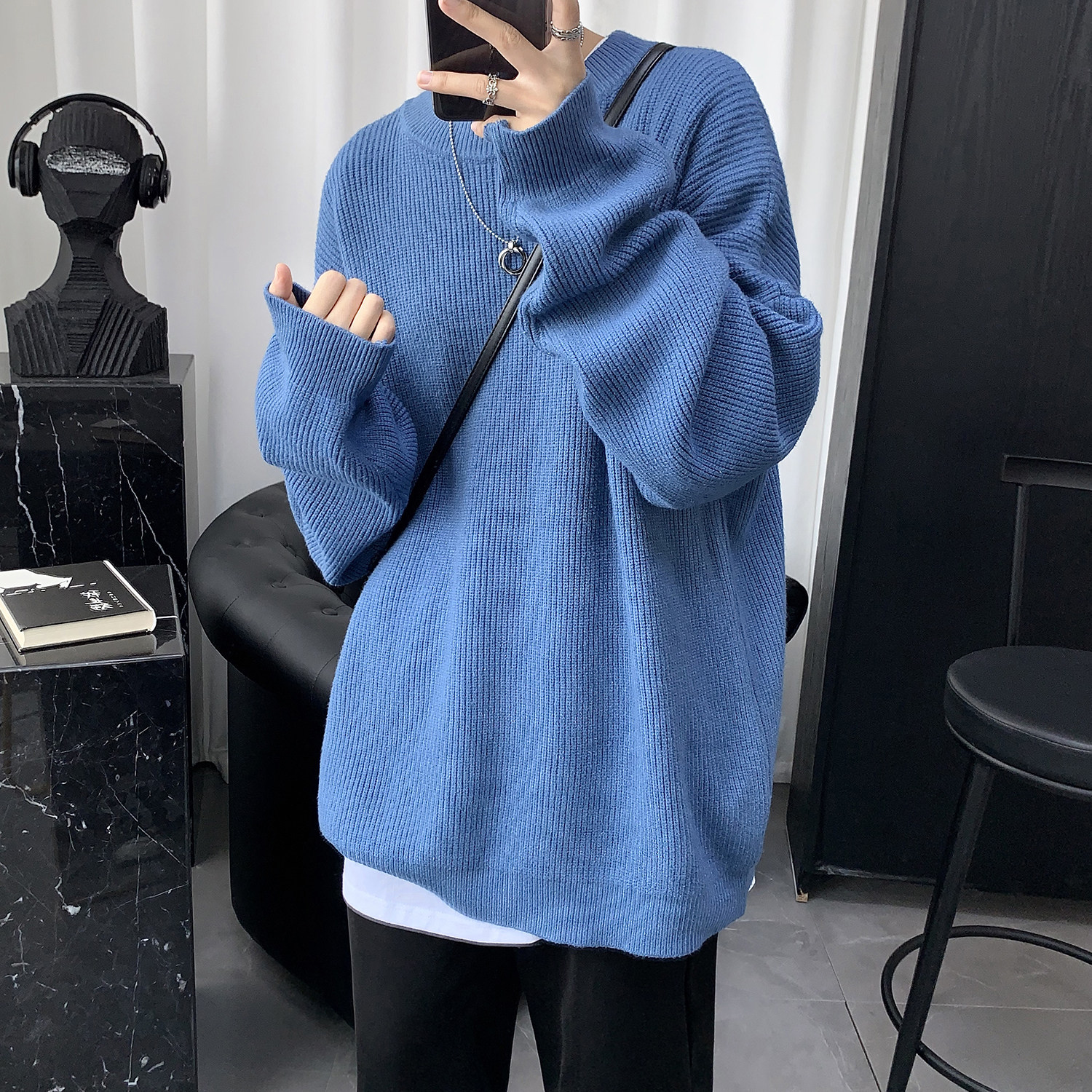 Men's clothing 2021 new round neckline oversize sweater for men's autumn and winter thickened with a hitch of the undershirt