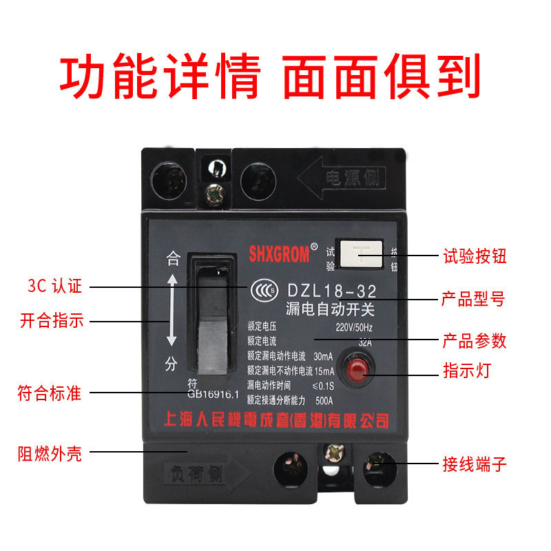 Shanghai people DZL18 - 32A 20A leakage protector Cable disk suitcase two - phase leakage switch site