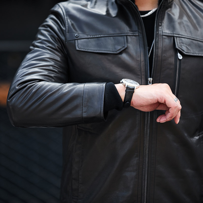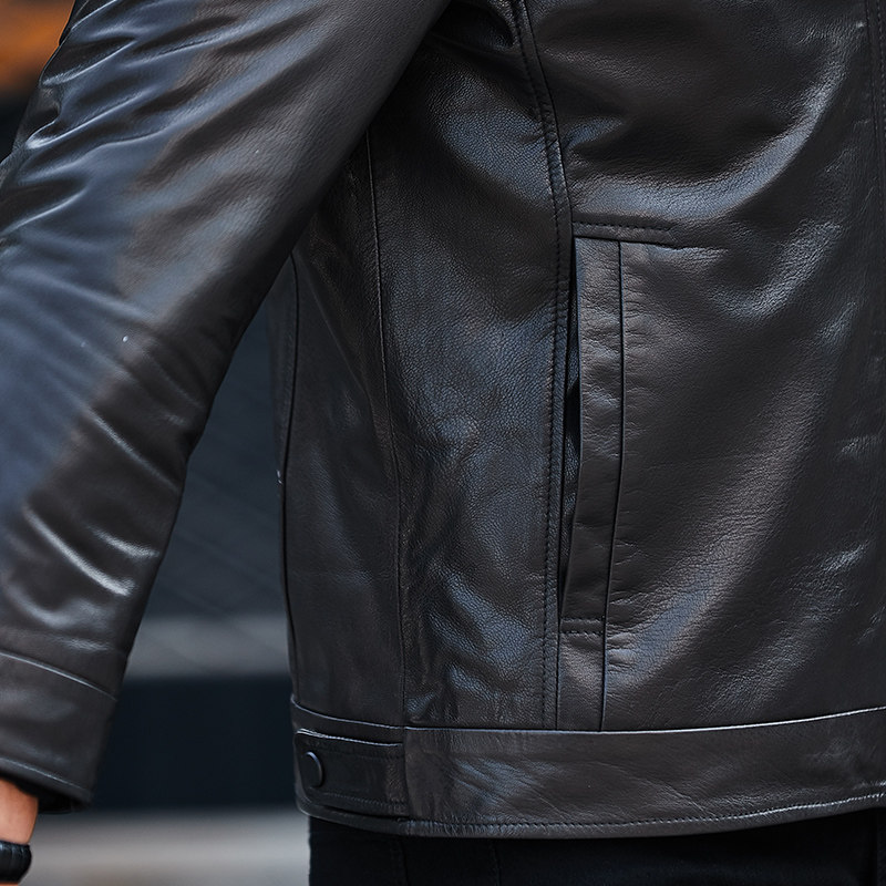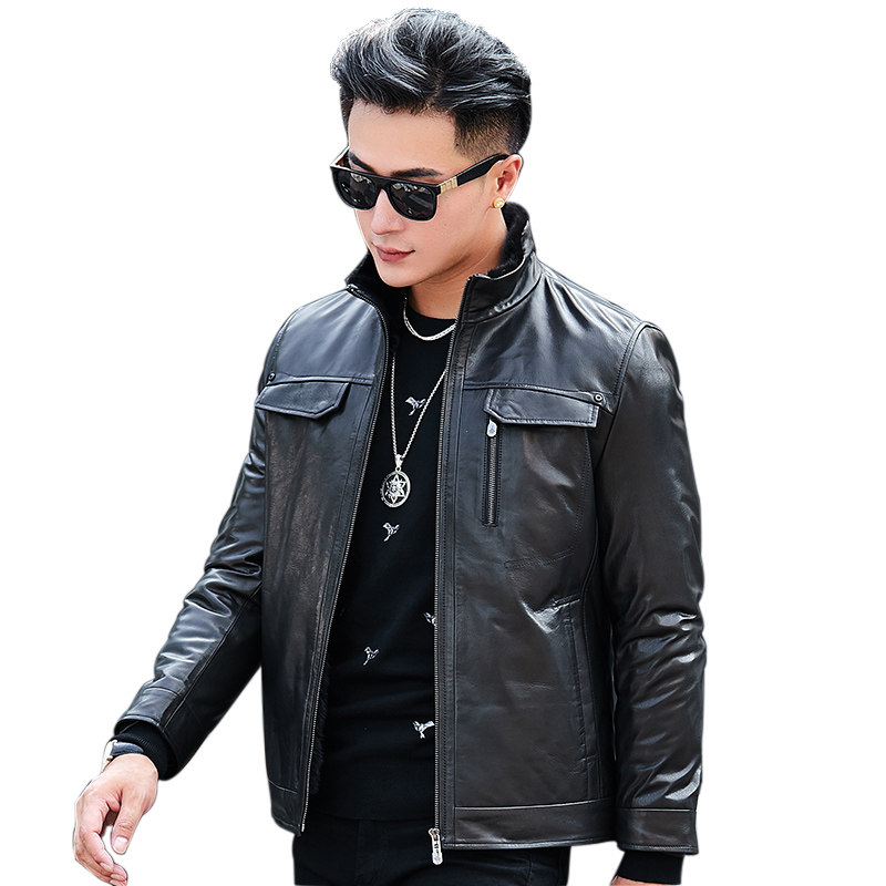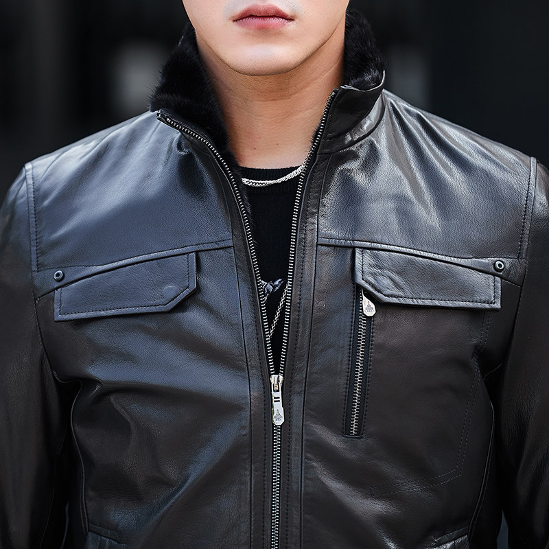 Men's Genuine Leather Coat Mink Liner Whole Mink Coat Stand Collar Short Leather Jacket Goat Leather Fur Coat