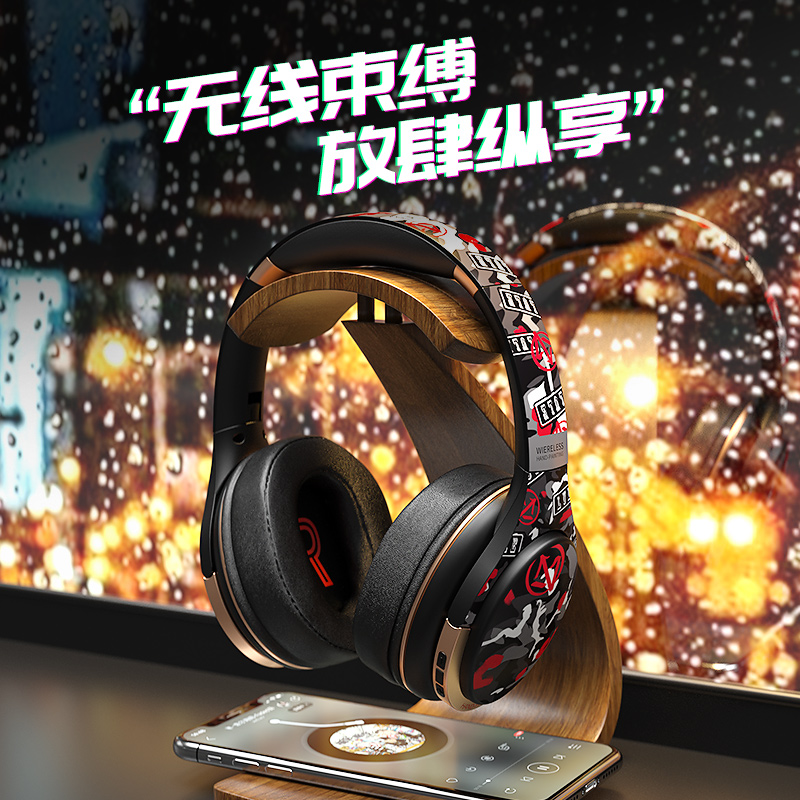 Hierland German tide graffiti wireless sports bluetooth headset 5 0 head-mounted ear protection card MP3 radio call computer game AUX not into binaural waterproof mobile phone universal headset noise reduction