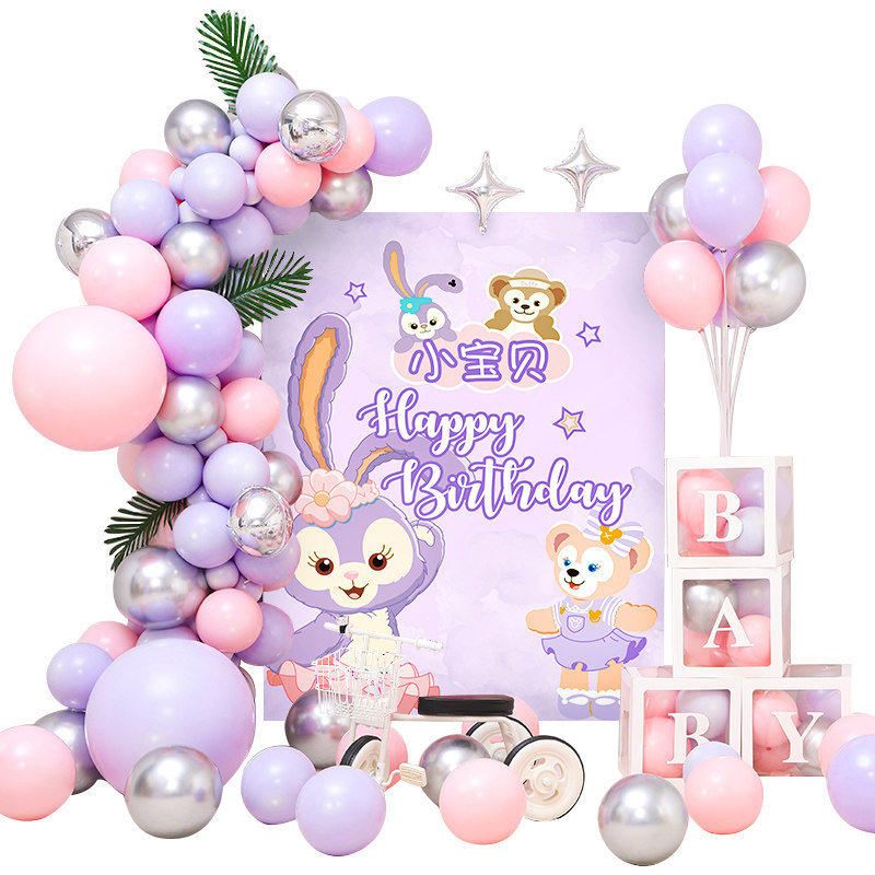 Girl child baby 1st birthday decoration scene decoration full moon 100-day feast theme background wall balloon